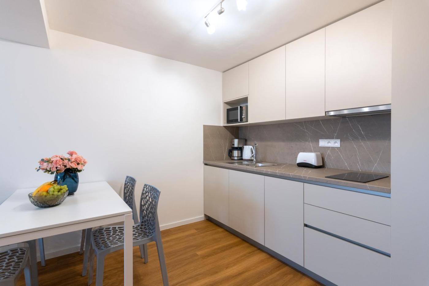 Deluxe Studio. The apartment features 1 bedroom and 1 bathroom with a shower and free toiletries. Meals can be prepared in the kitchen, which is equipped with a stovetop, a refrigerator, a dishwasher and kitchenware. The apartment provides a washing machine, a tea and coffee maker, a seating area, a dining area, as well as a flat-screen TV. The unit offers 1 bed.